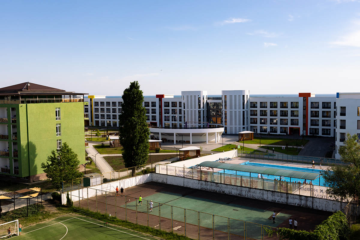 Корпус «Аврора» - это три современные здания, вокруг которых сосредоточены все спортивные объекты, включая открытый бассейн (25 м). Общая вместительность 530 человек.