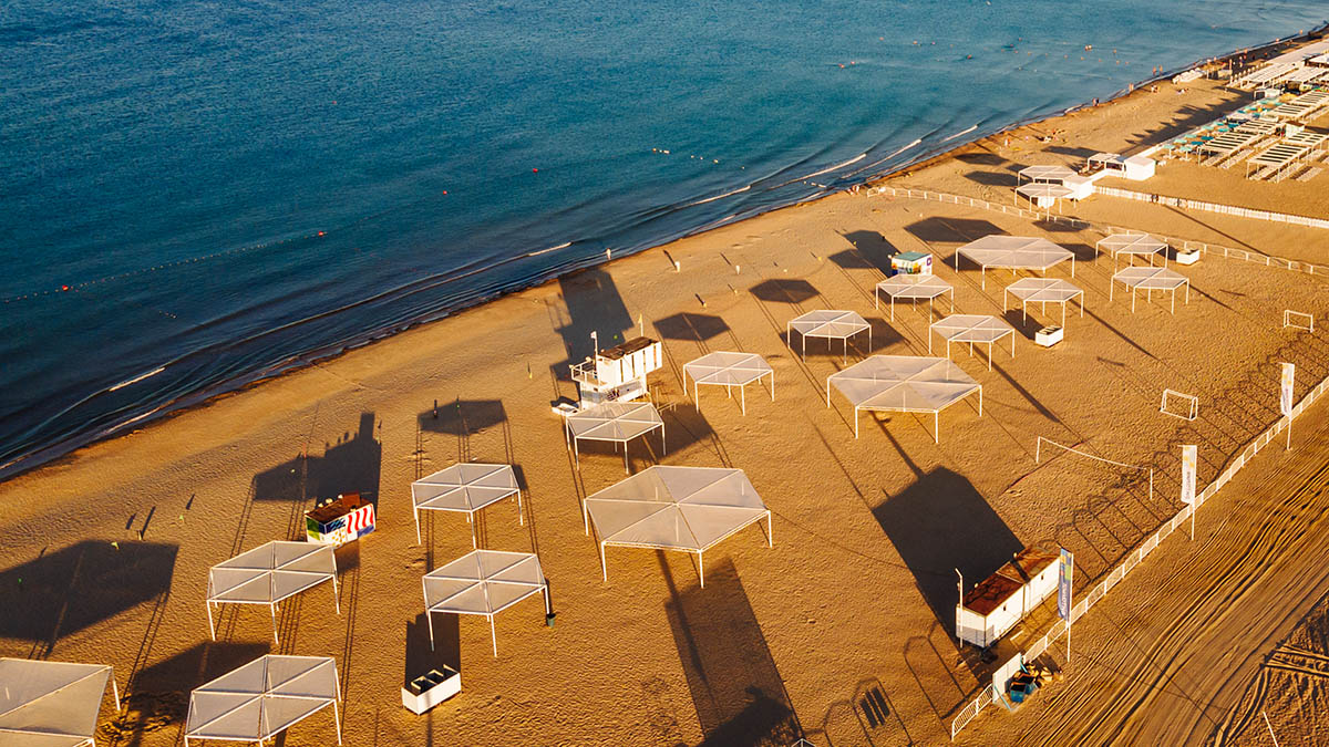 - 2 площадки для пляжного волейбола (16 м х 8 м);